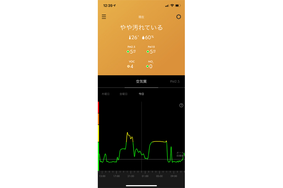 PM2.5などの正確な検出値は表示されないが、ざっくりした推移はわかりやすい