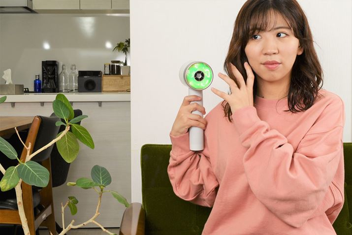 一般的に、ヘアドライヤーからの温風を同じ場所に当て続けると、「熱っ!」と叫んでしまうほどの熱さにびっくりすることがあるが、Zuvi Haloでは、そうした状態にならない。温風で乾かす仕様ではないため、頭皮に近づけても、顔や耳にZuvi Haloから放出される風が当たっても熱くないのだ。実際、赤外線光による熱を感じながらも、乾かした直後でも髪の毛はひんやりしていた。それでいて、手で髪の毛をすいた時の通りもいい印象。熱によるダメージが抑えられるのは、間違いなさそうだ。