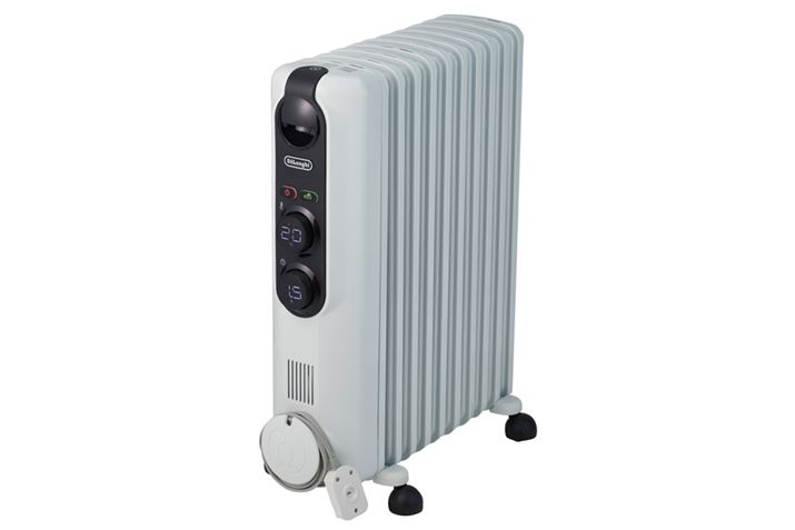 デロンギのオイルヒーターは、内部に密閉された難燃性オイルを暖めて放熱し、部屋全体をじんわり暖めるのが特徴です。パワーは3段階(600/900/1500W)から選択可能で、自動でON/OFFを繰り返し、室内を一定温度に保ちます。温風が出ないので部屋が乾燥しにくいほか、フィンにあけられた穴によって、外周部への熱伝導を抑制する「サーマルカットフィン」構造で、表面温度を抑えてやけどや火事が起こりにくい設計なので、子どもがいる部屋でも使いやすいのが魅力です。
