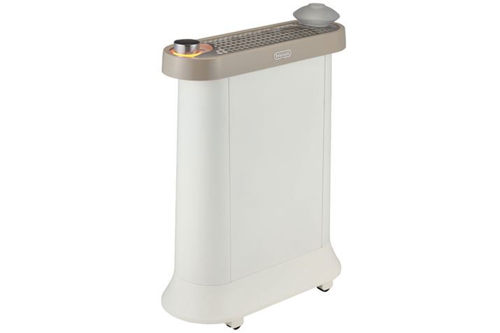 デロンギの「マルチダイナミックヒーター ソラーレ」は、オイルヒーターと似ていますが、オイルではなく、内部の熱源「ヒーティングエレメント」を温めて、輻射熱を放出するオイルレスヒーターです。温風を出さずに熱を伝えて部屋を暖める点はオイルヒーターと同じですが、オイルより早く温まるため、素早く部屋を暖められます。軽量でスリムな本体と操作しやすい液晶ディスプレイを採用するなど使い勝手がよいだけでなく、表面温度を抑えてやけどや火事が起きにくい設計で、子どもがいても安心して使えるのもポイントです。