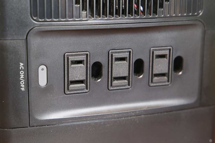AC出力:ACコンセント×3(定格1,000W/瞬間最大2,000W・100V/10A・60Hz)
