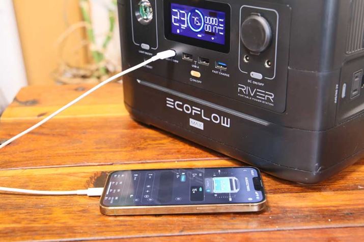約70分で満充電できる急速充電機能を備えています。バッテリーにはリン酸鉄リチウムイオン電池を採用しており、約3,000回の充放電サイクルを実現。毎日使っても10年間使用でき、80%以上の容量を維持できます。バッテリー容量は768Whで、定格出力800Wですが、「X-Boost機能」を使うことで、消費電力が1,000Wの家電も使用できるようになります。なお、USB Type-C端子の出力は最大100Wで、ノートパソコンなどの充電にも対応。停電などで電源が落ちたときにバッテリー駆動に切り替わるEPS機能を搭載しているので、無停電電源装置のような使い方もできます。スマホアプリからコントロールできるのも便利。