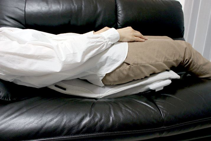 まずはソファの上に置いて、座って使用してみました。もみ玉の動きにあわせて、お尻がいろいろな方向に押し出されるような感覚。下部(座面)の4つのもみ玉の動きは、お尻の座骨から、尾てい骨まわりの筋肉まで、しっかりとほぐしてくれます。使いすぎるとかゆくなったりしそう、と思っていましたが、まったくそんなことはありませんでした。