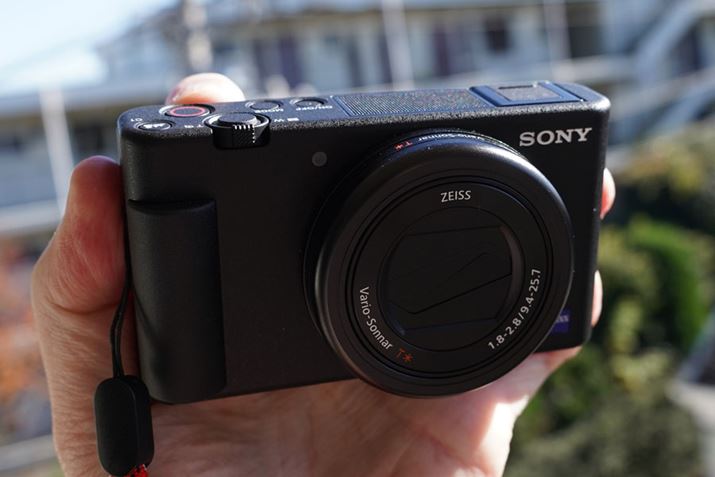 いっぽう、今回購入した「VLOGCAM ZV-1」は、「動画」ボタンがシャッターボタン付近に配置されて認識しやすくなったうえ、ボタン自体のサイズも大きくなっています。さらに、「サイバーショット DSC-RX100M3」ではカチッと力を入れて押し込んでいましたが、「VLOGCAM ZV-1」は「動画」ボタンの押し込みが軽く、スムーズに動画を撮影できます。カメラ上部をやさしくなぞって、シャッターボタンの近くにある「動画」ボタンにアクセスする――この操作にいったん慣れてしまえば、「動画を撮るぞ!」と思ってからすぐに、直感的に撮影をスタートできるはず。