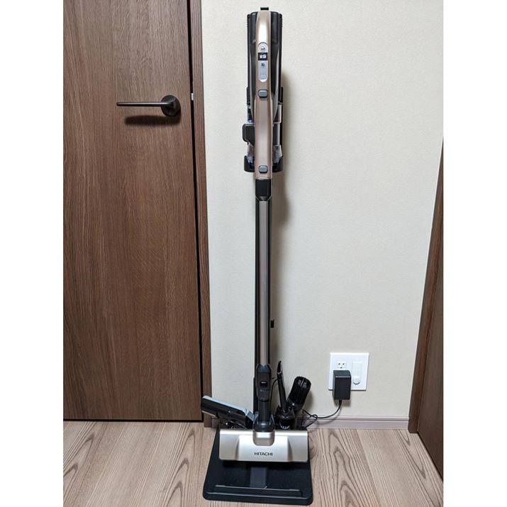 これまで使ってきたコードレススティック型掃除機がゴミを吸わなくなってきたので、久々に掃除機を買い替え。何がいいかいろいろ調べたところ、価格.comで評価の高かったこの製品に行き着きました。重視したのは、そこそこ軽いことと、そこそこパワーがあること。本製品はヘッド込みの標準質量1.4kgとかなり軽いのに、モーターは同じ日立のクリーナーの中でもそこそこパワーのあるものを採用しており、バランスのよさが秀逸。髪の毛がからまりづらい「からまんブラシ」もありがたい仕様です。しかも、ヘッドが、標準のパワフルスマートヘッドのほかに、ミニパワーヘッド、ハンディブラシ、すきまブラシ、ほうきブラシとかなりたくさん付いてきて、ユーティリティー性も抜群。決め手は充電スタンドが付いてきて、これらのヘッド・ブラシ類を整理できること。実は、人気のダイソンのクリーナーも考えたのですが、やっぱり充電スタンドは必須ということで、泣く泣く選外といたしました。