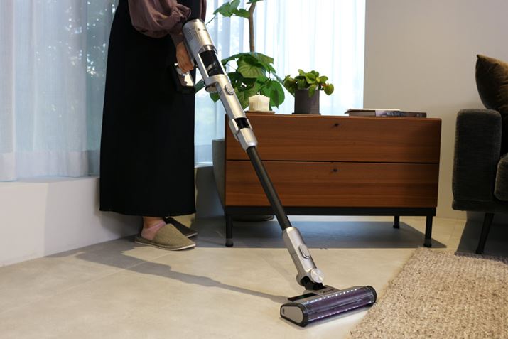 「CleanSense iQ/iQ+」は、これまで展開してきたコードレススティック掃除機「EVOPOWER SYSTEM」シリーズとは異なる新たに追加されたラインで、同社最高の掃除力を実現した最上位モデル。主力モデル「EVOPOWER SYSTEM iQ/iQ+」(2022年に発売)と比べると、デザインが大きく変わり、本体部がサイズアップしています。これは、「CleanSense iQ/iQ+」がもっとしっかり掃除したいユーザーのために開発されたモデルだから。「EVOPOWER SYSTEM iQ/iQ+」でも十分な掃除性能を有していますが、「CleanSense iQ/iQ+」は基本の掃除性能を向上させ、それに合わせてダストボックスの容量を大きくし、ハンドルなどを最適な形状にしたそうです。
