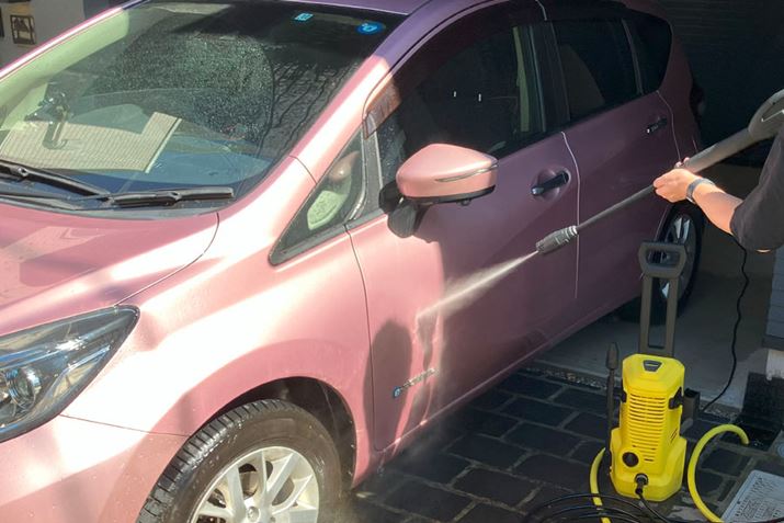 このほか洗車の際の注意点として、ケルヒャー公式ホームページでも記載がありますが、付属のサイクロンジェットノズルは圧力が高すぎるため、塗装がはがれる恐れがあるので、洗車では使わないように、くれぐれもお気つけください。