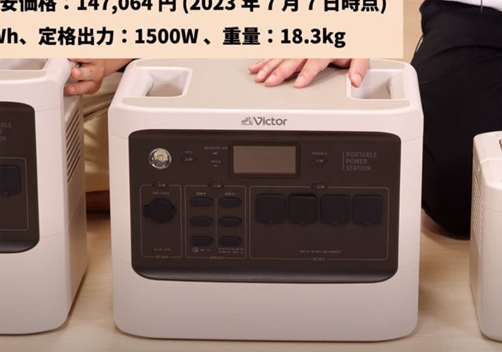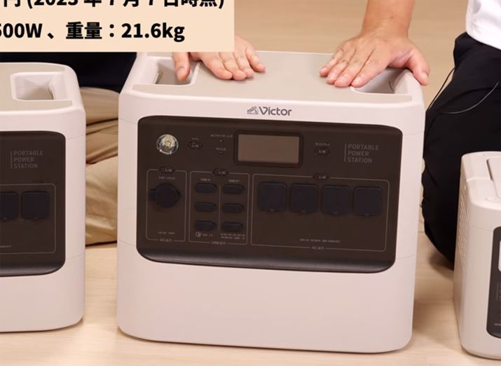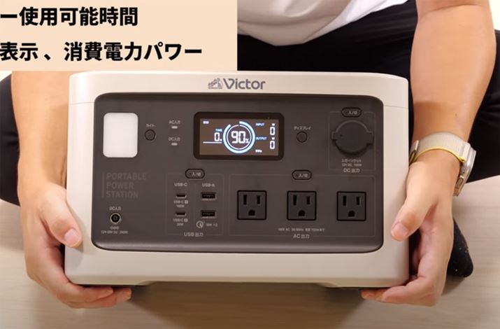 Victorブランドのポータブル電源は、大中小の3サイズがラインアップされていますが、一番容量の少ないモデルでもバッテリー容量は約800Whと、他社の中容量クラスなのも違いです。このほか、細かい点ですが、本体の各種文字が日本語というのも見逃せません。日本メーカーらしい安心感が強みと言えるでしょう。