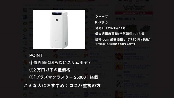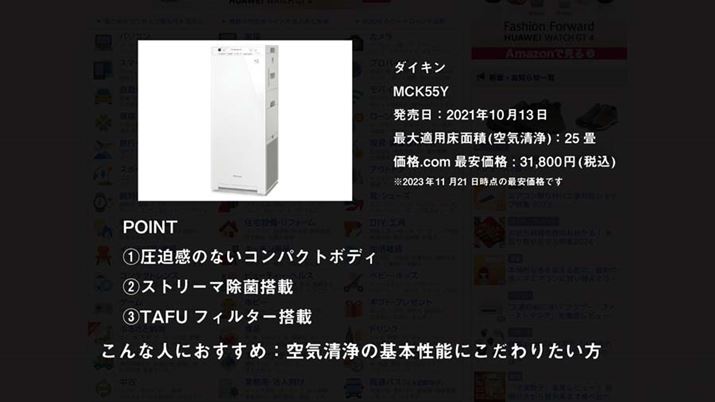 空気清浄機は価格の幅が広く、製品数も非常に多くなっています。そこで、ここからは価格.com編集長が選んだ、今お買い時の空気清浄機4モデルを紹介します。製品は以下にリストアップしますが、製品のより詳しい内容を知りたい方は、記事上部にある動画をぜひご覧ください。