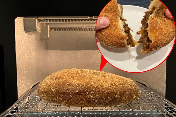 次は惣菜パンの代表カレーパン。こちらも気をつけて温めないと、中のカレーが冷たいままだったり、パン部分がパサパサになってしまいがちなのですが、「匠ブランジェトースター」にはそんな心配は不要なようです。