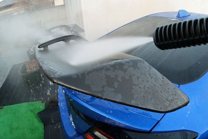 基本的な操作感は、一般的なコイン洗車場にあるスチームと変わりません。コーティングが施されたボディなら水圧だけでも十分洗浄できますが、ボディ表面を洗浄したいときはスポンジやシャンプーなども併用するとなおよいでしょう。