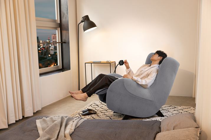 また、通常のマッサージソファで悩みのタネなのがサイズ問題。ちゃんとしたマッサージソファは部屋に置くと大きすぎて存在感がむだにありますが、こちらは約65(幅)×110(高さ)×105(奥行き)cm(※通常時)と非常にコンパクト。1人掛けのソファとほとんど同じサイズ感です。しかもリクライニングのことを考えるとさらにスペースが必要となってきますが、後ろ側は約10cmのスペースがあればOKなんです。