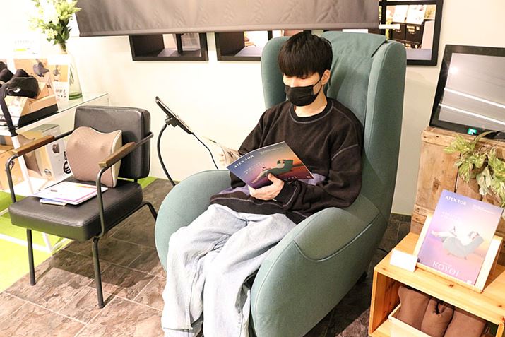 普段、デスクでの作業がメインで腰や肩の痛みが気になる人にぜひ注目してほしいのが、こちらのマッサージソファ「KOYOI(AX-HD410)」。今までアテックスではマッサージクッションが主な商品でしたが、今回ソファタイプが満を持して初登場しました。