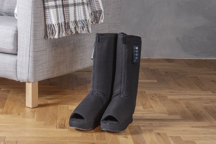 使い方はいたって簡単で、履くだけでOK。足先からふくらはぎまでエアバッグで包み込み、マッサージをすることが可能です。なんと言ってもコードレスなので、移動できるのが最大の特徴。ちょっとスマホを取りたいとか、宅配便が届いたので応対したいとか、そういったちょっとしたときに動けるのは地味にうれしいですよね。