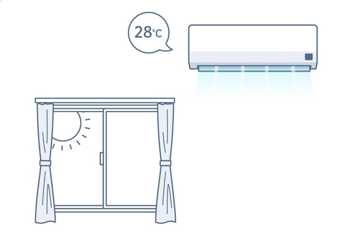 夏に冷房を使用する際、室内を冷やしすぎるとむだな電力を消費します。無理のない範囲で室内温度を上げましょう。冷房使用時の目安は28度です。
