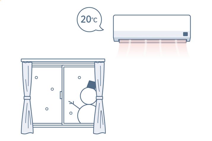 冬は外気温と室温の差が大きいため、夏よりもエアコンの消費電力が増えます。極端にエアコンの温度設定を高くせずに、適温設定を心掛けましょう。室温の目安は20度です。