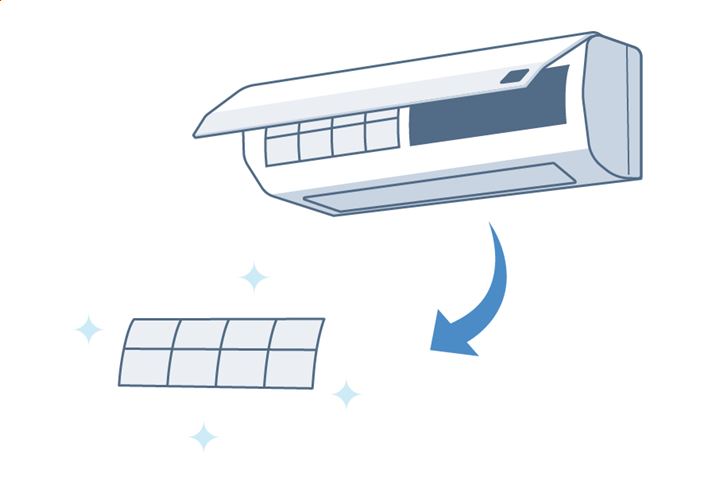 フィルターが目詰まりすると本来の性能が発揮されないため、月に1〜2回は掃除をしましょう。掃除をする際は、フィルターを外し、表面に付いたホコリを掃除機でていねいに吸い取ります。汚れがひどいときは、水を張ったバケツなどに液体の中性洗剤を少し入れてつけ置きし、洗浄しましょう。十分に水ですすぎ、日陰でよく乾かしてから取り付けてください。なお、フィルターの自動掃除機能が付いているエアコンもあります。