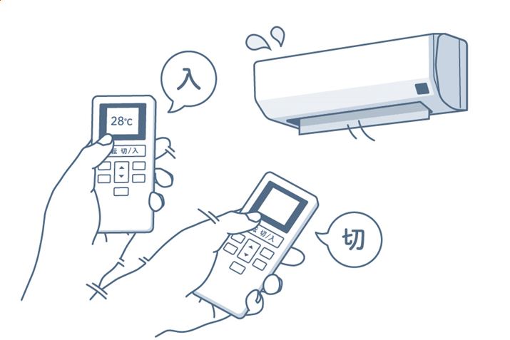 エアコンは起動時に電力を多く消費するため、こまめに電源のオン・オフを繰り返すと節電には逆効果です。連続で使用する場合は、「自動運転機能」(機種によって名称が異なる)を利用しましょう。室内が設定した温度に達すると、あとは温度をキープする少ない電力消費で済みます。