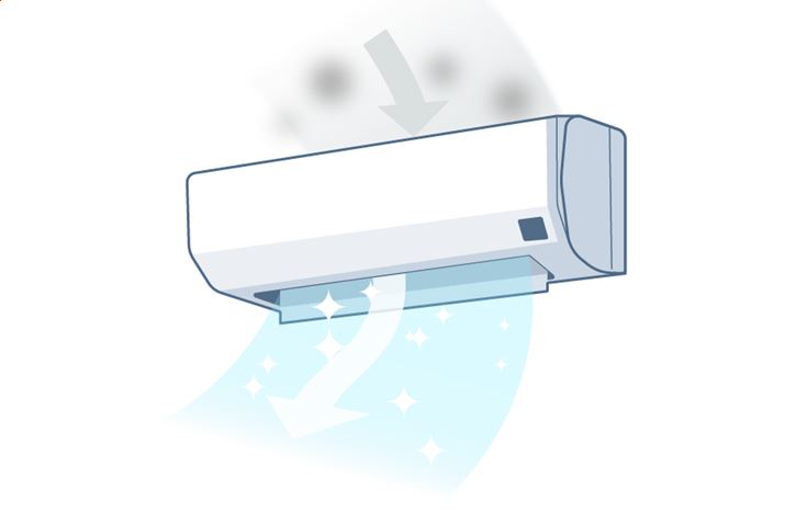 ホコリや花粉、カビ・細菌などの物質をフィルターや電気の力で集じんし、空気を浄化する機能。単体の空気清浄機と同程度の空気清浄力を備えたエアコンもあります。