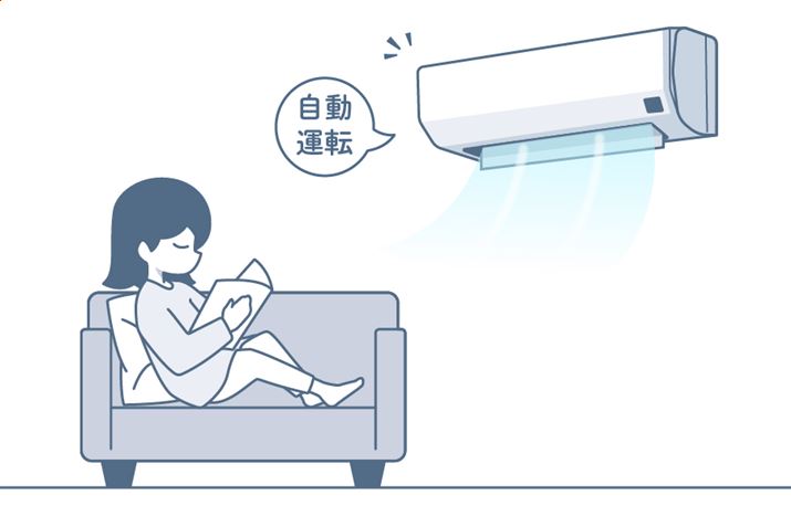 「AI自動運転」とは、AIが外気温の変化や1人ひとりの体感温度などを先読みして、運転を自動でコントロールする機能のこと。人が暑い・寒いと感じる前に室温を調整したり、各家庭に合った最適な設定を学習したりするため、省エネにつながります。
