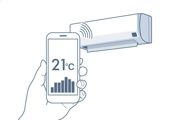 専用アプリをダウンロードしたスマートフォンやタブレットをリモコンとして使える機能です。外出先から電源のオン/オフや、室内・外気温の確認もできます。なお、別売部品の購入や、専門業者による工事・設定が必要になることもあります。
