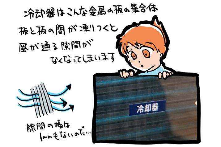 では、室温が低いときはどうでしょう。なぜ、バイパス風路からの空気を冷却器に送るのでしょうか。それは、冷却器が凍るのを防ぐためです!