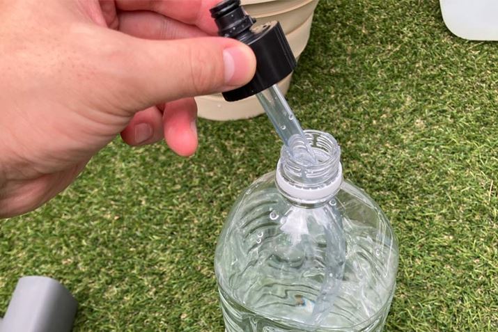 本体の充電はUSB Type-Cで行い、約4〜5時間で満充電となり、各モードに合わせて14分〜30分使用できます。給水は2パターンあり、1つは本体に付属の給水ホースをセットして、バケツなどに溜めた水を使用する方法。もう1つは専用のペットボトルコネクターを使って本体にペットボトルをセットして使用する方法。