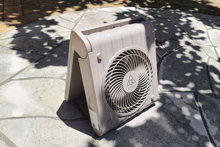コンパクトに収納でき、防水仕様でコードレスでも使えるので、幅広い場所で使用可能。運転音などちょっと気になる点はあるものの、外出時にベランダなどの日当たりのいい場所に置いてソーラー充電しておけば節電に役立ちます。