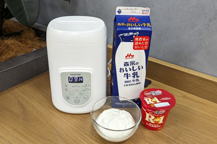 なお、500mL牛乳パックはふたを伸ばさずにセット可能。500mLサイズの牛乳パックにだけ対応するコンパクトモデルとして発売すればよかったのでは? と思われるかもしれませんが、ヨーグルトメーカーでヨーグルトを作るには調理時間(発酵時間)が6〜9時間かかります。その後、冷蔵庫で冷やす時間も必要。長時間かけて500mL分だと割に合わないので、ふたを伸縮する機構にすることで1L牛乳パックに対応しつつ、小型化も実現したのはナイスアイデアだと言えるでしょう。