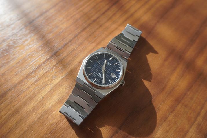 小誌で腕時計を担当する筆者のベストバイはティソ「PRX パワーマティック80」です。普段は、ダイヤルが白もしくは黒の定番色を選ぶのですが、今回は初めて青の一本を携えてみることに。なぜかというと、イイ意味で(?)ミーハーな筆者は、腕時計の潮流である“カラーダイヤル”にガッツリとなびいていたから。とはいえ、失敗はしたくない! なので、緑やオレンジといったチャレンジングな色味ではなく、親近感のある青をチョイスしました(しかも黒寄りの青)。