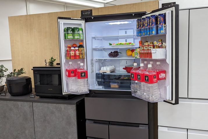 2025年度の「Fit63シリーズ」のラインアップは、容量545Lの「SJ-MF55P」(幅730mm、高さ1,838mm)、505Lの「SJ-MF51P」(幅685mm、高さ1,838mm)、457Lの「SJ-MF46P」(幅650mm、高さ1,838mm)、429Lの「SJ-MF43P」(幅650mm、高さ1,750mm)のほか、「どっちもドア」を採用した457Lの「SJ-MW46P」(幅650mm、高さ1,838mm)の5機種です。