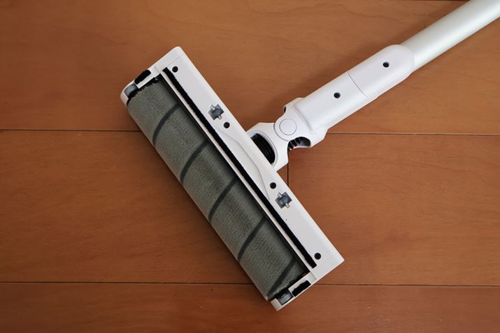 もう1つ、掃除機のメンテナンスで面倒なのがヘッドブラシ。本モデルはソフトローラーブラシを採用していますが、これは通常のハードブラシと比べて髪の毛などがからみにくいというメリットがあります。実際に1週間ほど掃除を続けたあと、ローラーブラシを見てみましたが、髪の毛やペットの毛などの毛がらみはまったく見られませんでした。これが1か月2か月と続くと、さすがに毛がらみが見られるかもしれませんが、その場合でもローラーブラシは簡単に取り外せて、からんだ毛をハサミで除去できます。また、ローラーブラシの汚れがひどい場合は、水洗いもできます(洗剤・漂白剤の使用は不可)。