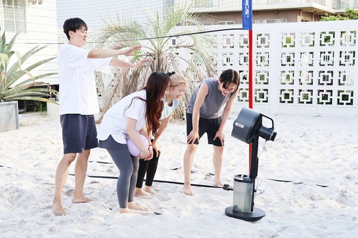 本モデルのもうひとつの特徴が、付属の「ミストアタッチメント」を取り付けて水道につなぐことで、ミストシャワーを楽しめること。ミストの気化熱効果で、最大5度くらいまで肌の表面温度が下げられます。真夏のバーベキューやガーデニング時にはもってこい! ちなみに、屋内での使用は避けたほうがよさそうです。