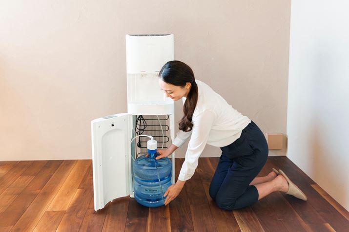 水ボトルの種類もポイントのひとつ。従来ボトルはほとんどがリターナブル(回収タイプ)でしたが、最近は空きボトルを自宅で処分できる使い捨てタイプが増えていて便利です。水の交換頻度は高くなりますが、水がパック詰めになっているタイプだと、ゴミはほとんどでないのでさらに便利です。