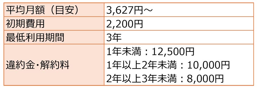 ※平均月額は、(水の料金+サーバーレンタル費用+配送料+メンテナンス費+その他固定費)/最低利用期間 を元に算出しています(最低利用期間が"1年未満"の場合は1年間使用した場合を想定して算出)※平均月額は水の注文量によって変動します(表では月間使用量を2人世帯24Lとして試算)