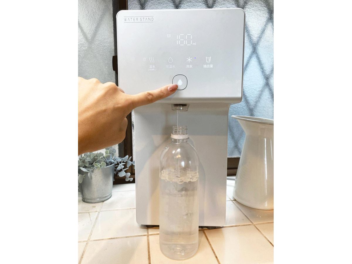 水道直結でタンクレス、究極に便利な浄水型卓上ウォーターサーバー「ナノシリーズ・アイコン」、500mmペットボトルを置いて注げる抽水口の高さも◎
