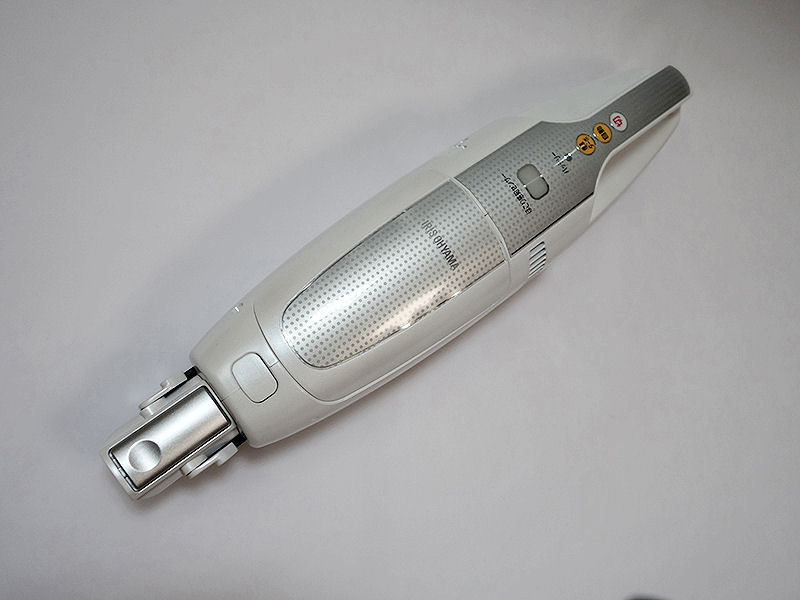 本体だけならば、ハンディクリーナーとしても利用できます。サイズは、10.1(幅)×10.7(高さ)×45.9(奥行き)cm。重さは0.98kgと、なんと1キロ以下!