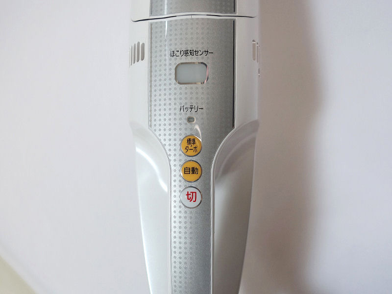 操作は手元のボタンで行います。「標準/ターボ」で強/弱運転の切り替えが可能。また「自動」では、「ゴミセンサー」により、ホコリの多い場所では強運転、少ない場所では弱運転に自動で切り替わるようになります