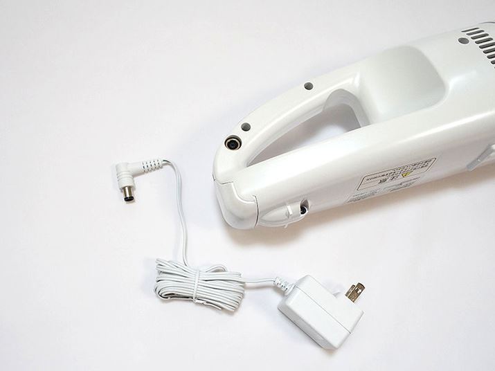 充電用の電源プラグ差し込み口は、ハンドル部分横に配置。“置くだけで充電”ができないのは少々面倒に感じました
