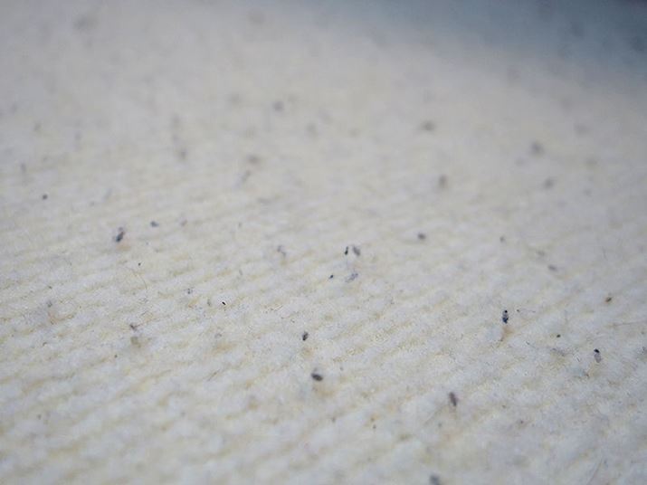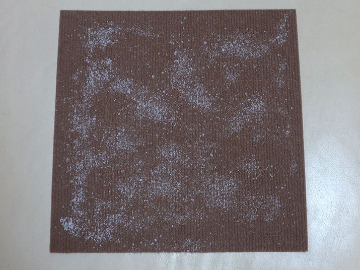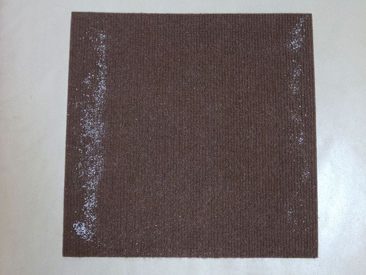 苦手とするカーペットでも、ほとんどのゴミは強力に吸い取ってくれました。犬の毛と湿った砂をカーペットに擦り込み、中心部をゆっくり2往復したところ、写真のように、かなりキレイになりました