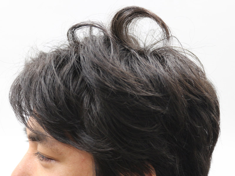 寝坊して髪をセットせずに出勤してしまったという編集部員の寝ぐせ直しにも挑戦。水や寝ぐせ直し用ミストなどは使用せず、風量「SET」の「温風」モードを当てながら整えたところ、30秒ほどでキレイに! 本人も、“いつもより髪にまとまりがある感じ”とご満悦