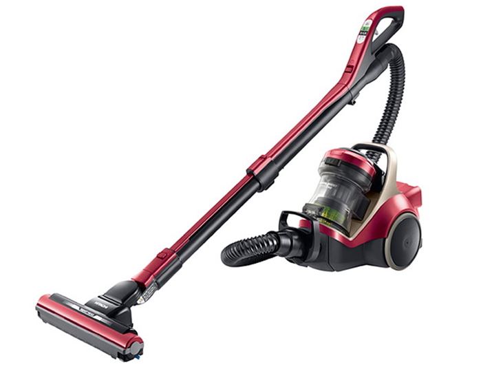 水洗い可能な独自の本格的サイクロン機構を採用。これにより、ミクロのゴミを99.9%まで分離するため、吸引力を99%以上持続できるという“小型で軽量なのに吸引力が強力”がウリの本製品。それでいて軽量化にも成功。本体、ホース、延長管、ヘッドなどを合わせた重量は、従来機種(「VC-SG513」「VC-SG514」)より約200g軽い4.6kgとなっています。