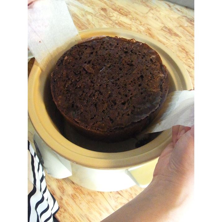 鍋の上にキッチンペーパーを2枚重ね、ふたをして「弱」モードで2〜3時間加熱すればOKだ。ケーキ作りというと、いかにも手間のかかる作業のように思えるが、これならまるでホットケーキでも作るような手軽さだ
