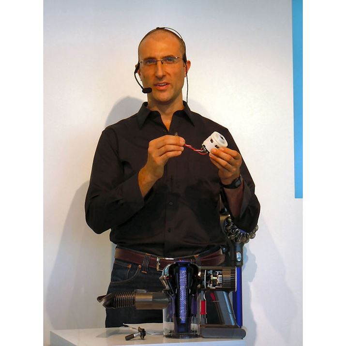 「DC62」の最大の特徴は、前モデル「DC45」(2012年9月発売)からのパワーアップ。新モーターの採用やサイクロン数のアップなどにより、見た目にはわかりにくいのだが掃除機としての能力が飛躍的に向上しているという。具体的にはどのような点が進化したのか。先日、その詳細について、ダイソンのモーター開発部門の責任者であるエイドリアーノ・ニロ氏によるプレゼンテーションが行われたので、その模様をレポートしよう。