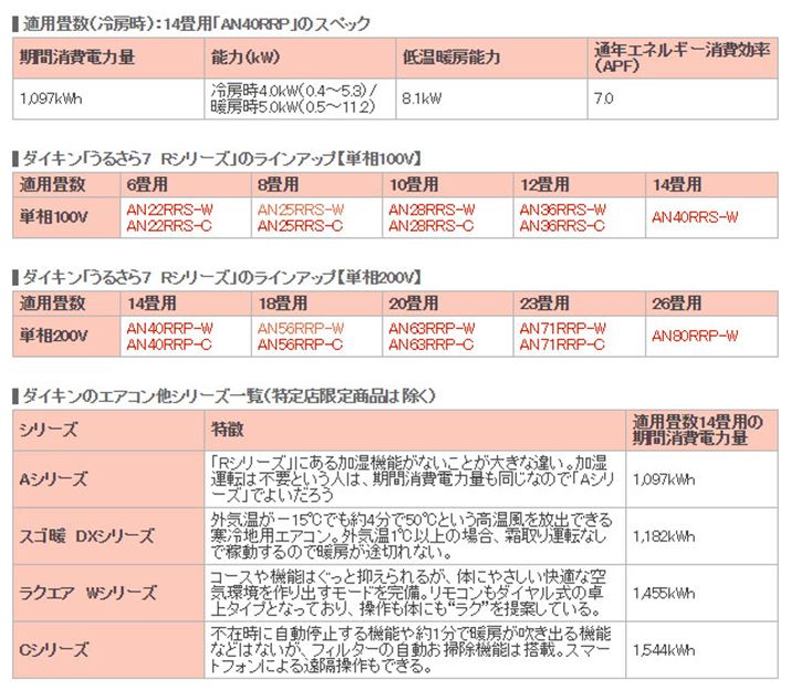 湿度と温度を併用した快適な“体感温度”を追求しているダイキンは、冷房時は「除湿冷房&ゆらぎ気流」で設定温度28℃でも涼しく感じるエコ運転を完備。もちろん、宅外からエアコンをスマートフォンで操作できる遠隔操作にも対応するほか、酸化分解力の高い「ストリーマ」がフィルターに捕らえたカビや花粉などに効用する機能も備えている。また、「うるさら7 Rシリーズ」だけでなく、下記で紹介している全シリーズに「R32」を搭載。