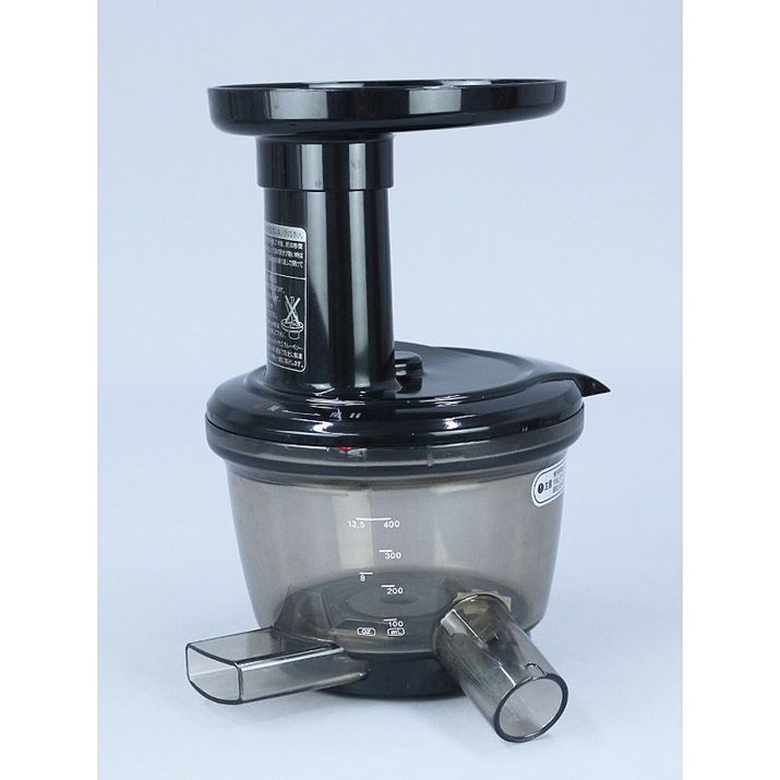 セットが完了したジューサーに、ジュースカップと繊維質容器(スムージー、フローズンデザート用のストレーナーを使用する際は不要)を置いてから使用する