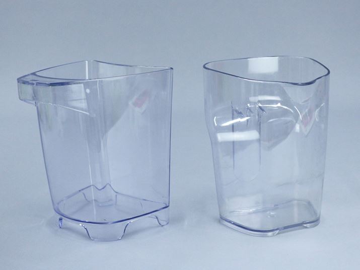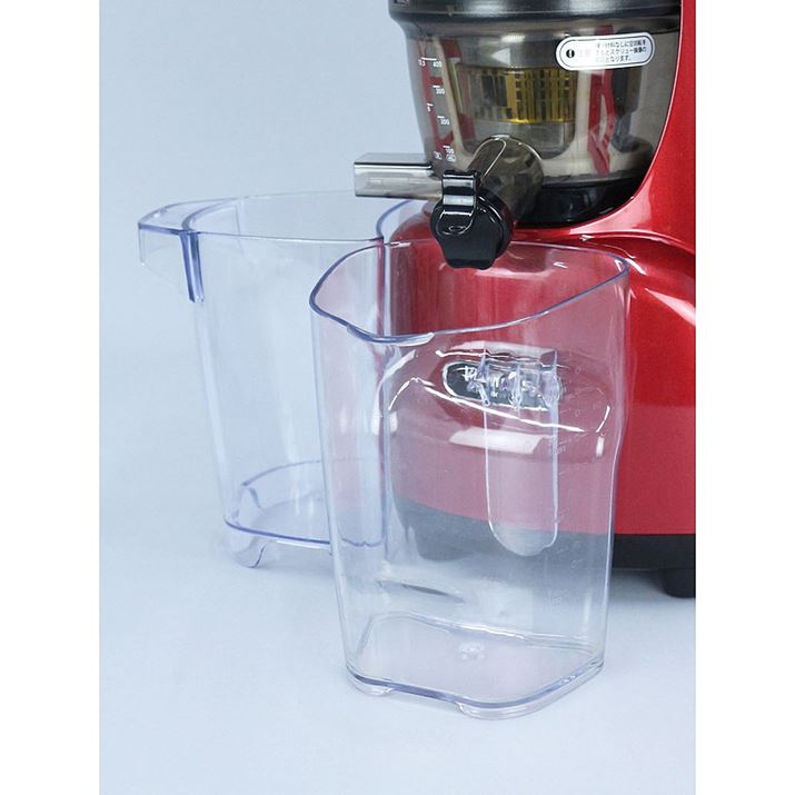 搾り取られたジュースを入れるジュースカップ(写真右)と、ジュースを搾った後の繊維をキャッチする繊維質容器(写真左)