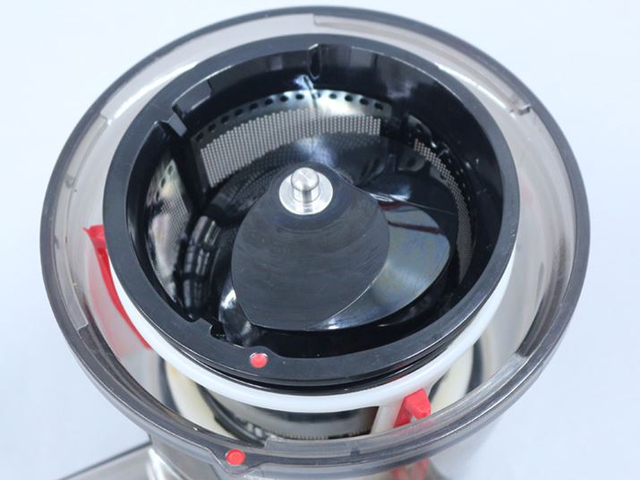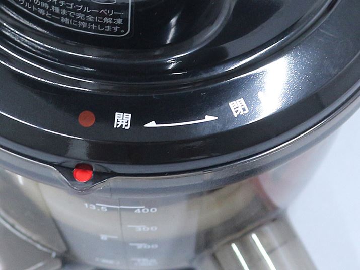 スムージー用のストレーナーを使用する際も、ストレーナーの赤い●と、ドラムの赤い●が同じ位置に来るようにセットする