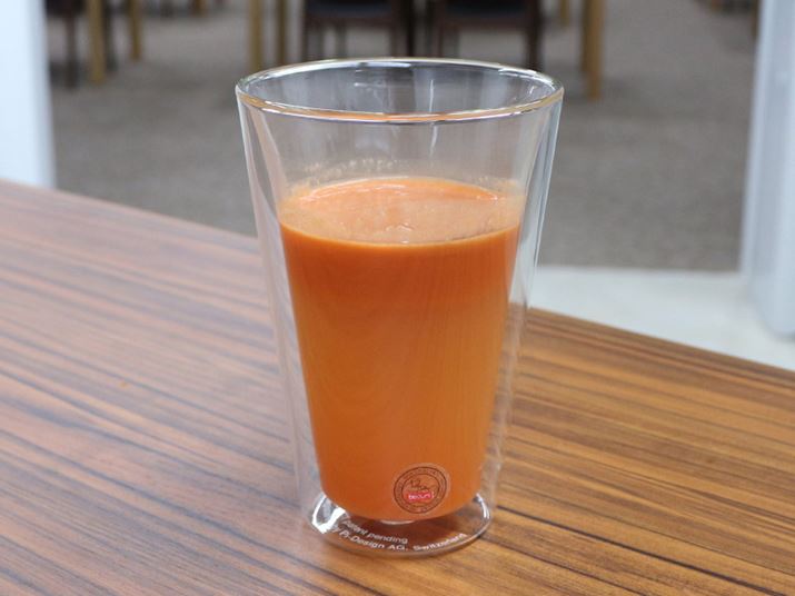 ジュースはりんごの甘みが強く飲みやすいものの、にんじんの香りもしっかり残した健康的な味わい。飲み口もサラリとしていて、毎日でも飲みたいくらいおいしい!