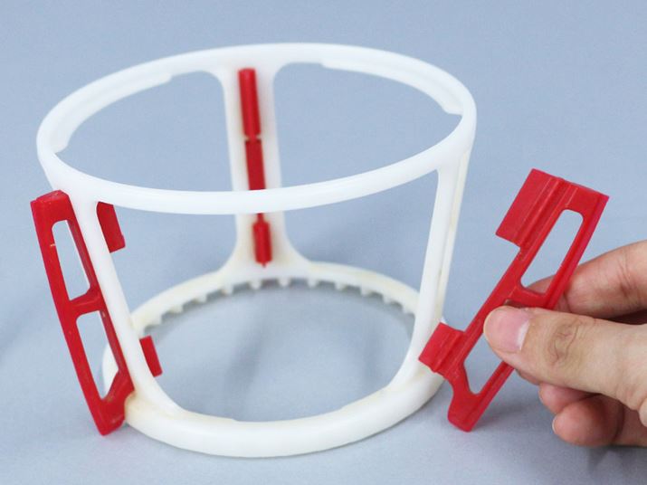 ホッパー(手前)、容器ふた(左奥)、ドラム(右奥)
